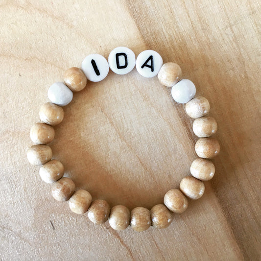 Personalisiertes Baby & Kinderarmband aus Holzperlen