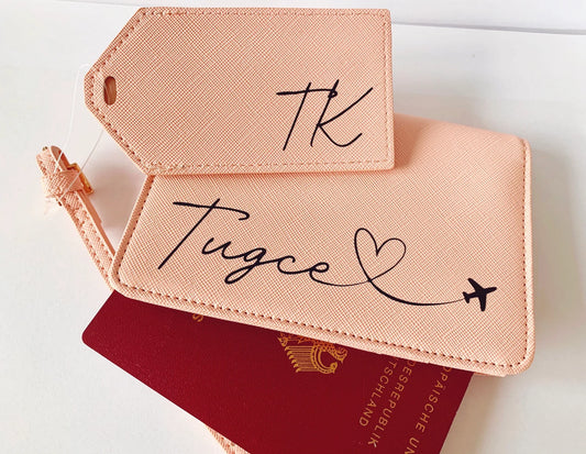Personalisierte Passporthülle + Kofferanhänger – 2er Set – Design 2
