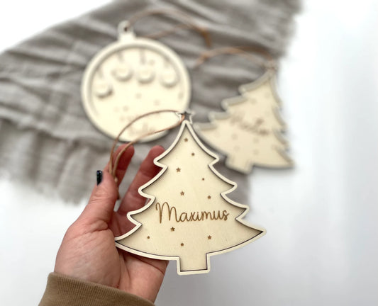 Personalisierter Weihnachtsbaumanhänger – Weihnachtsbaumkugel aus Holz 3D