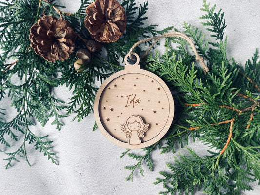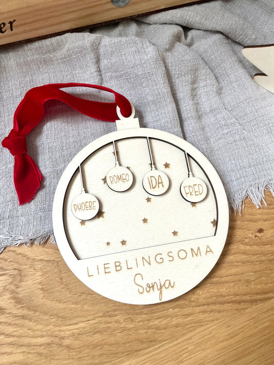 Personalisierter Weihnachtsbaumanhänger – Weihnachtskugel aus Holz 3D