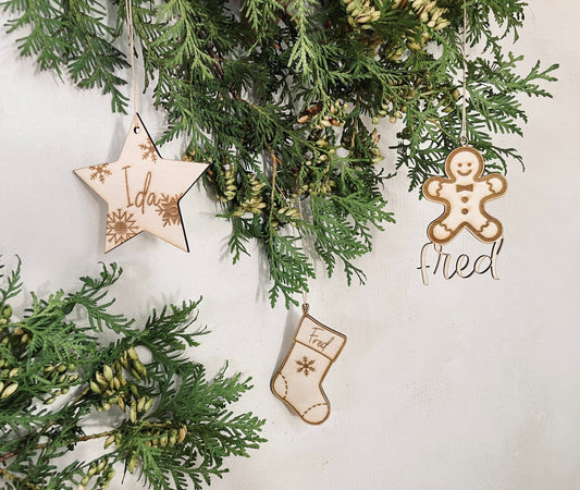 Personalisierter Weihnachtsbaumanhänger – Niolausstrumpf aus Holz