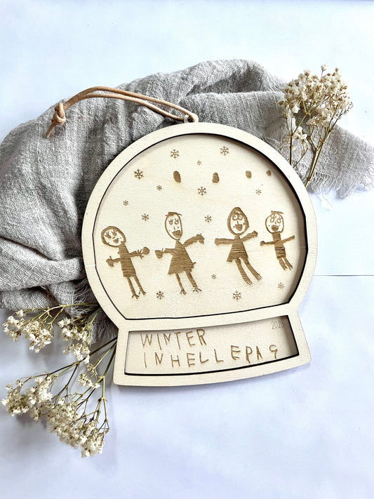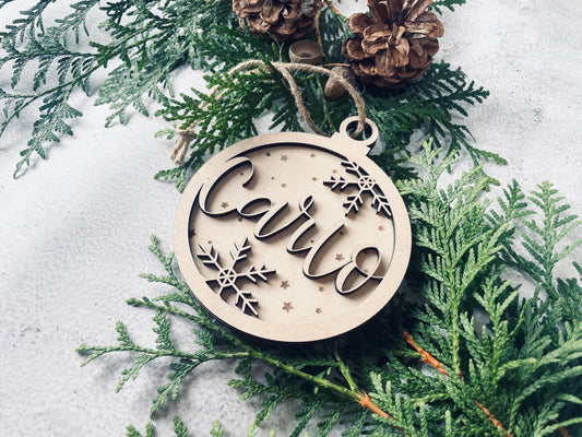 Personalisierter Weihnachtsbaumanhänger – Schneeflocken-Kugel aus Holz 3D