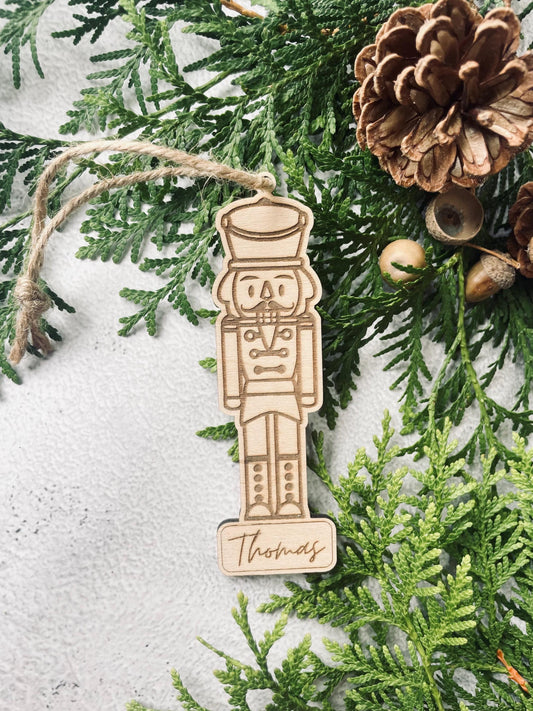 Personalisierter Weihnachtsbaumanhänger – Nussknacker aus Holz