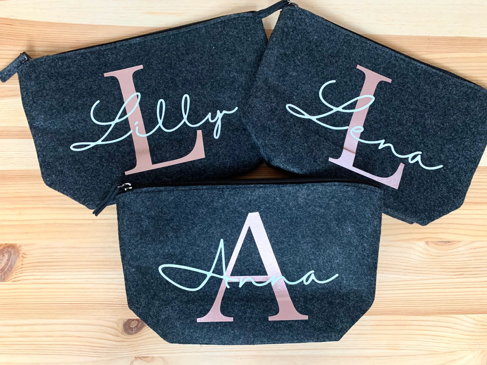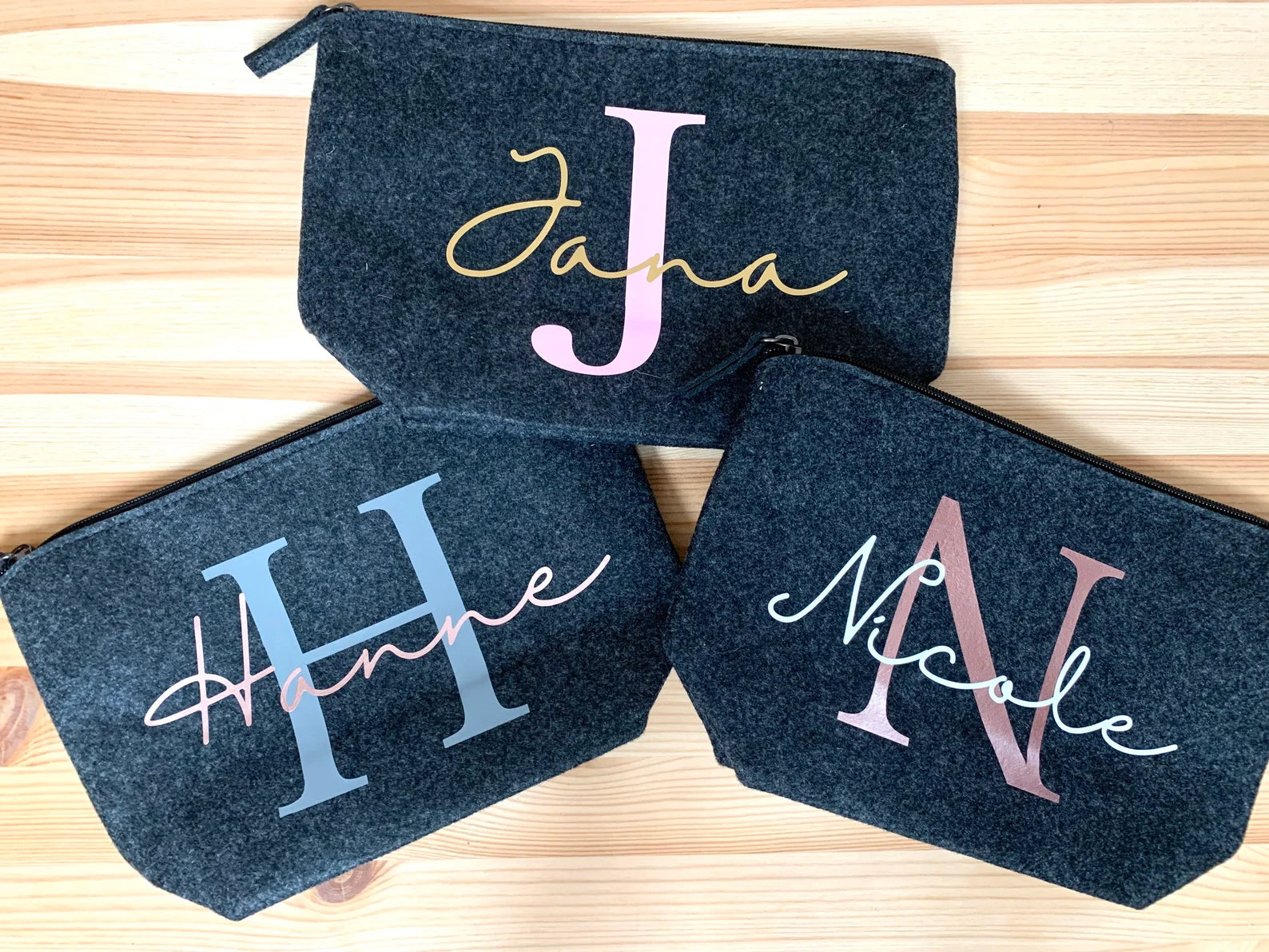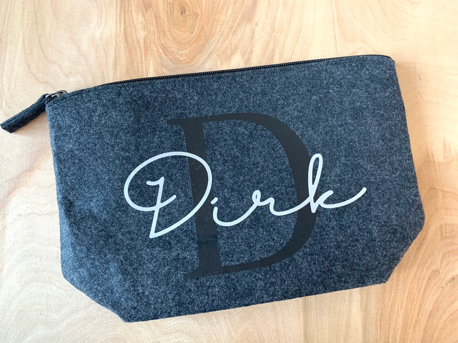 Personalisierte Filztasche/ Kosmetiktasche in dunkelgrau