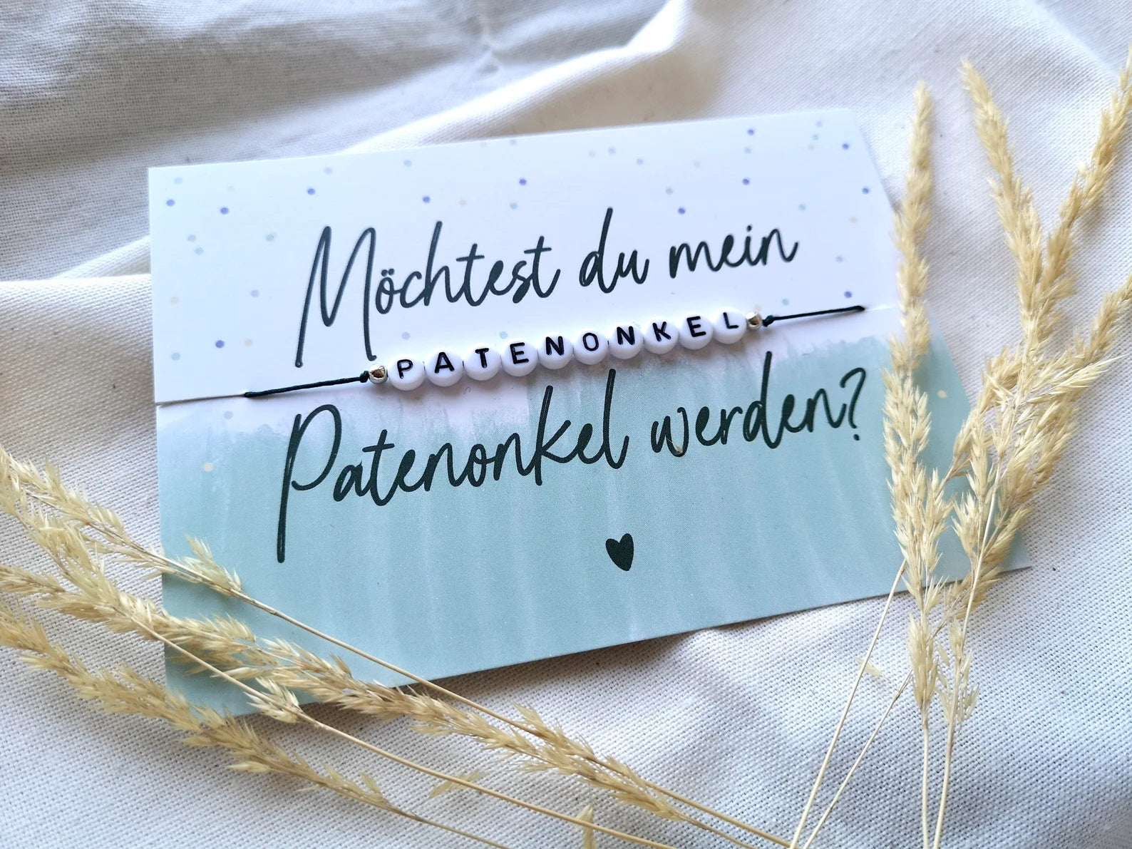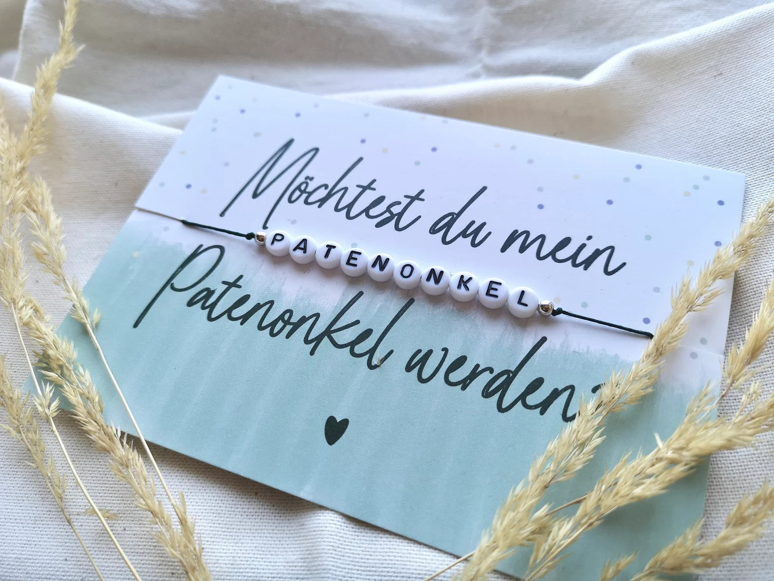 Armband mit der Botschaft: Willst du mein Patenonkel werden?
