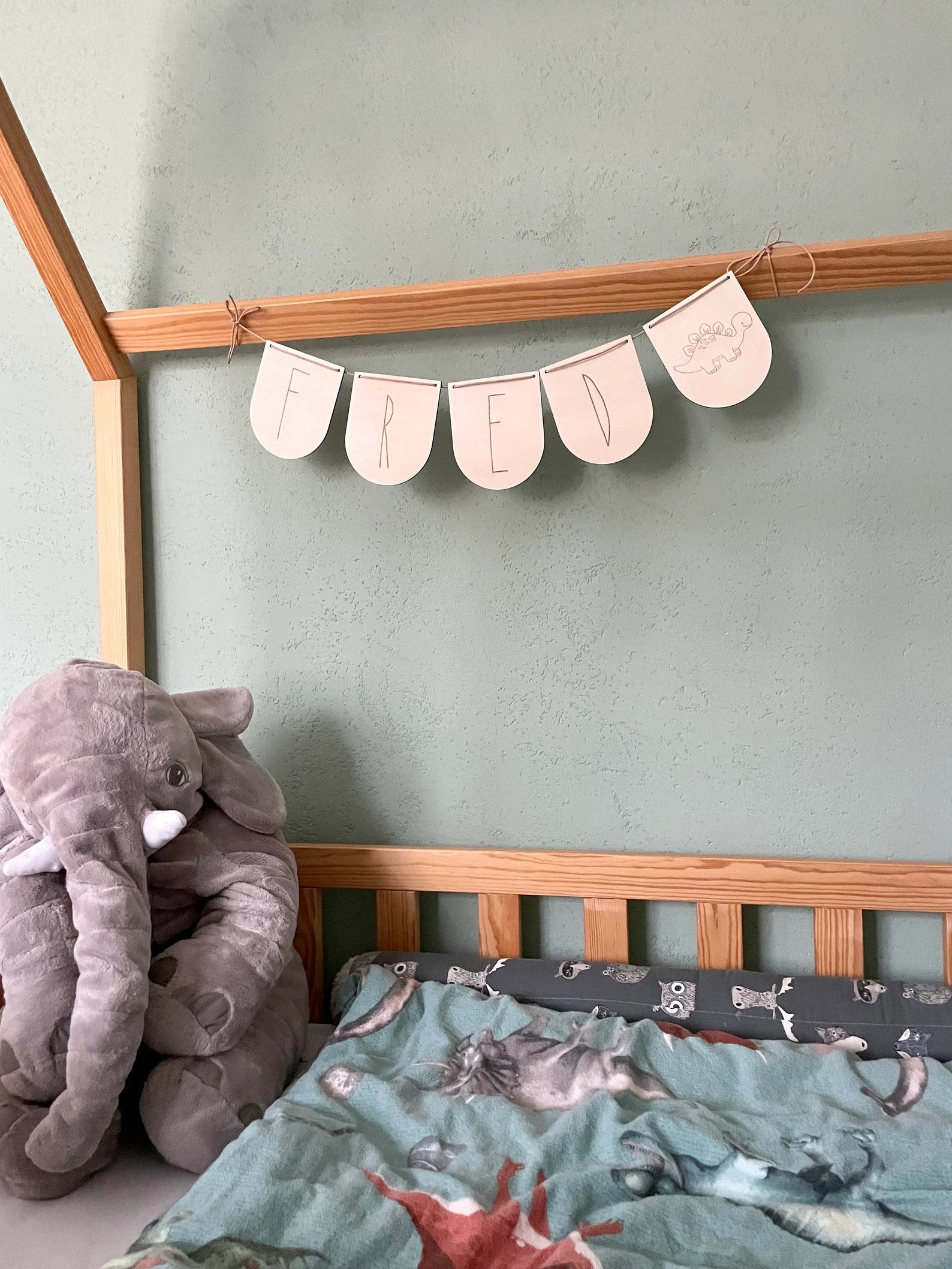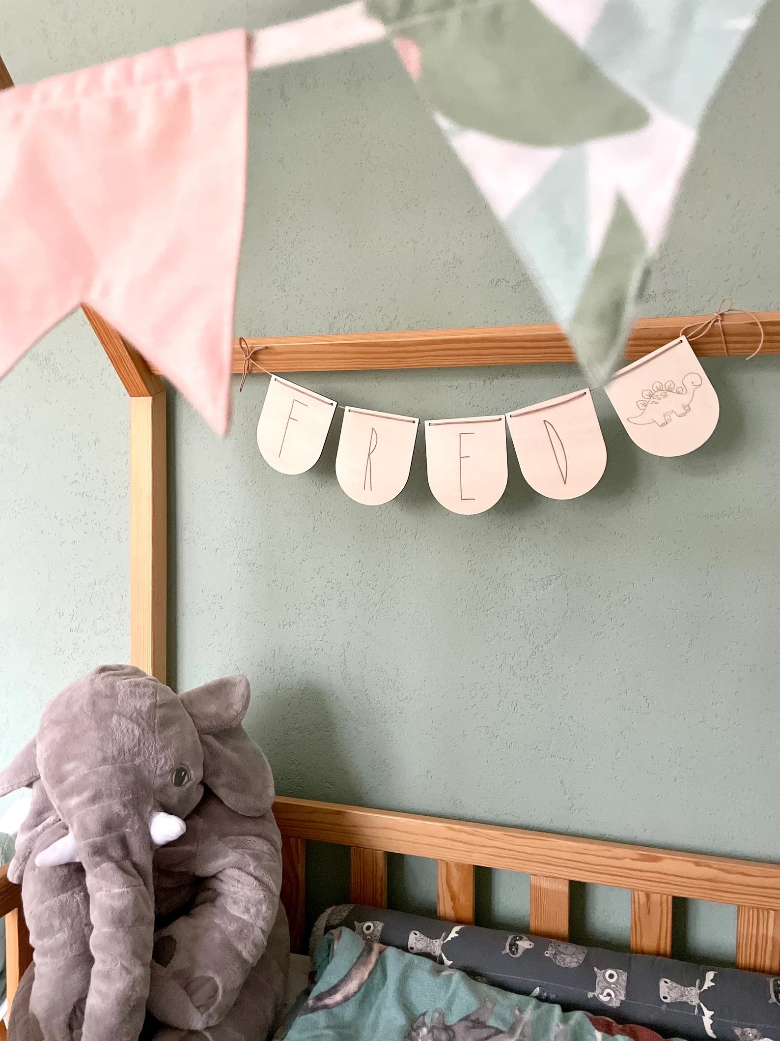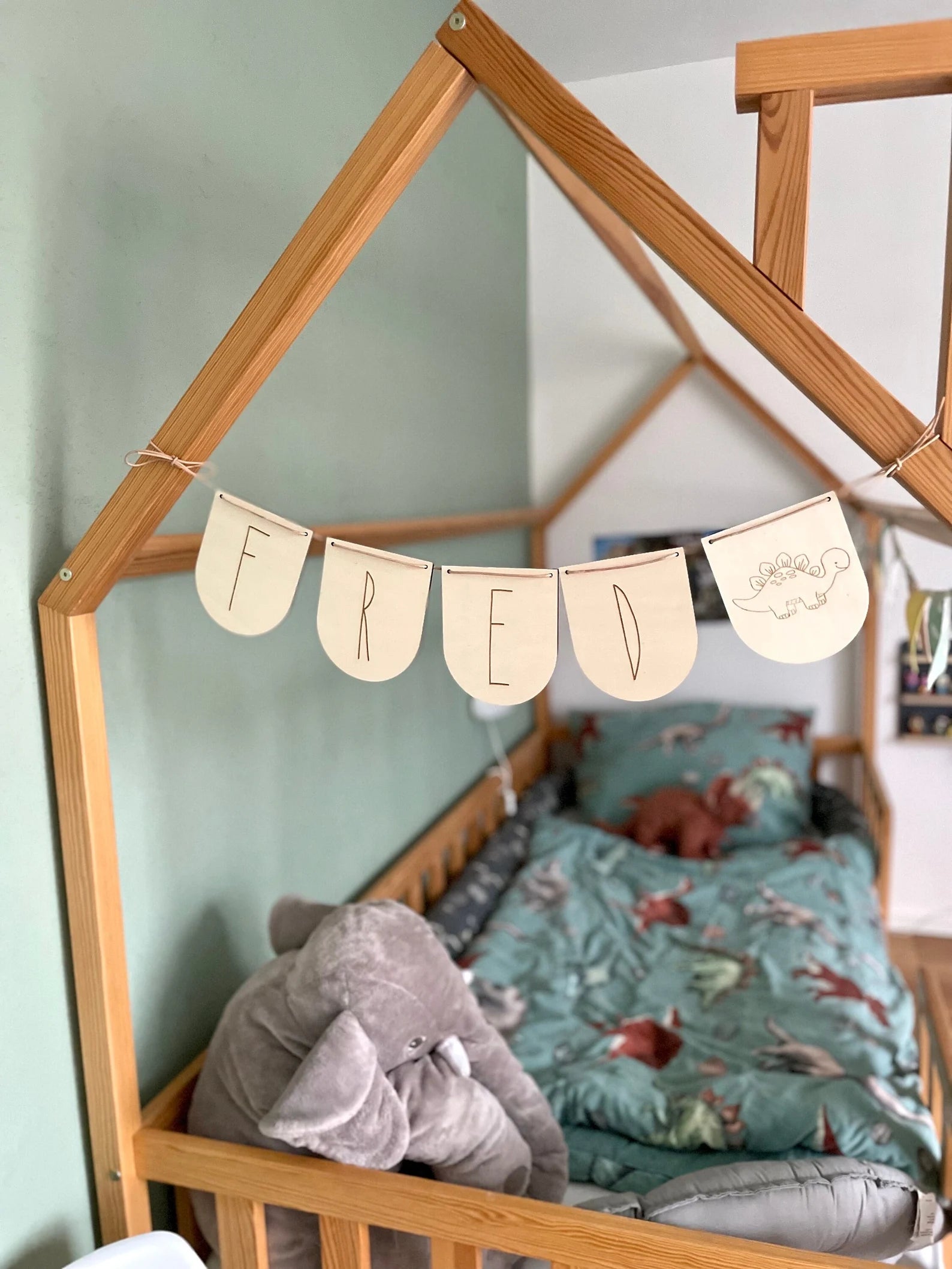 Wimpelkette aus Holz – Personalisierte Deko fürs Kinderzimmer